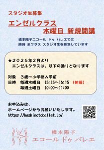 エンゼルクラス 新規開講♪ 2025年12月10日 hashimotoballet エンゼルクラス木曜日に新規開講します♪今まで土曜日のみでしたが、来年2月より平日(木曜日)にもクラスを設けます! 対象:3歳〜小学校入学前日時:木曜日15:15〜16:15 :土曜日10:00〜11:00 体験、見学のお問い合わせいつでもお待ちしております。
